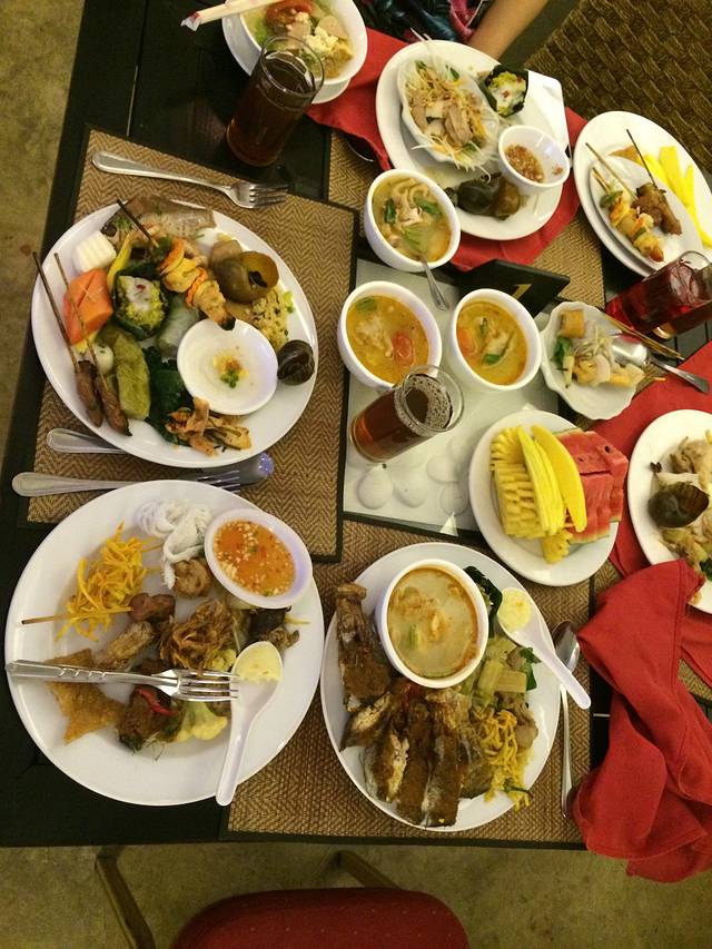 晚饭很丰盛啊,昨天去看仙女舞找29号住的酒店的时候,咱不是发现酒店隔壁有一个不错的自助餐厅吗,今天咱就去了,12刀一位,环境很好,有空调,菜很多很多的。