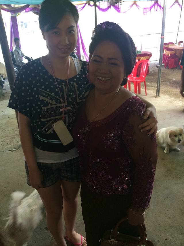 吃完早饭,精神倍爽,上车开了一小段,看到一户大户人家结婚,我们三人就没脸没皮的挤进结婚现场去了,排场真不小,还有演出团队,有钱人啊!里面正在进行什么仪式,家里七大姑八大姨的看见我们几个外国人很高兴的出来迎接,岳母大人笑的见眉不见眼的,富态可掬,热情的跟我们合影,恨不得请我们坐下来吃饭。孩子们也都化着妆,开开心心的合影。