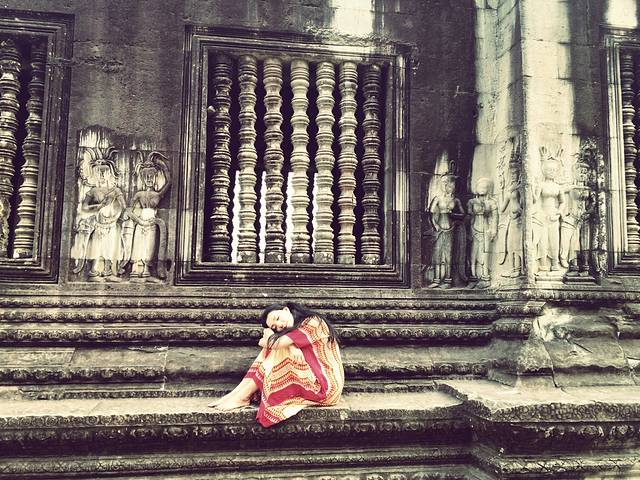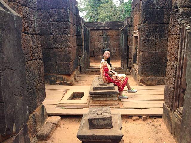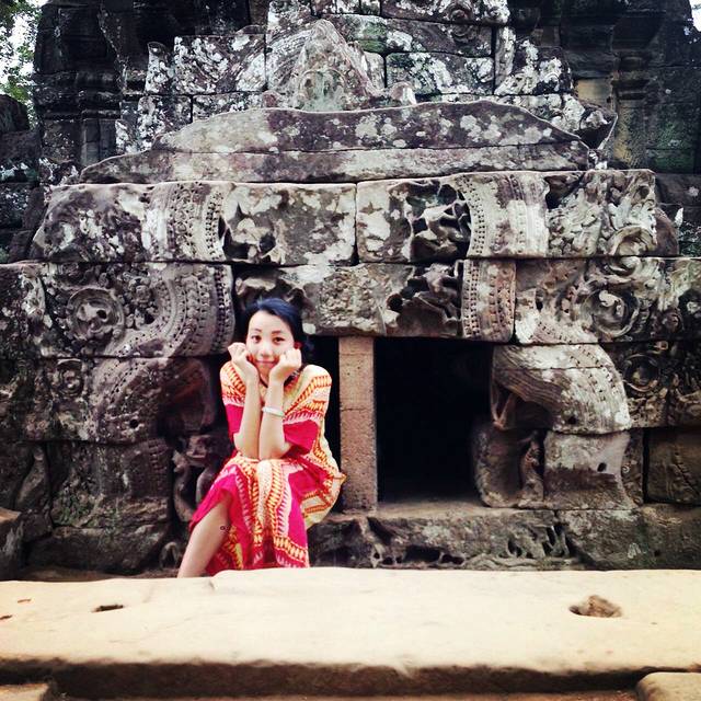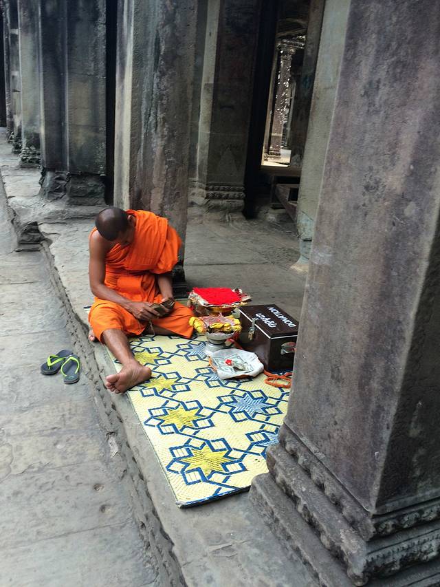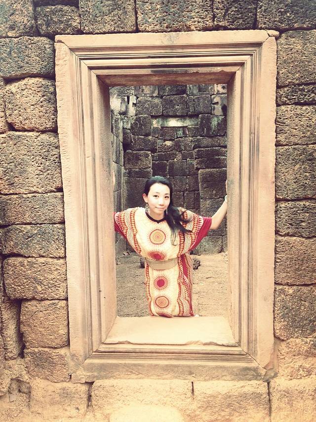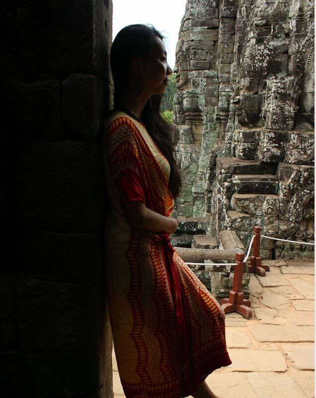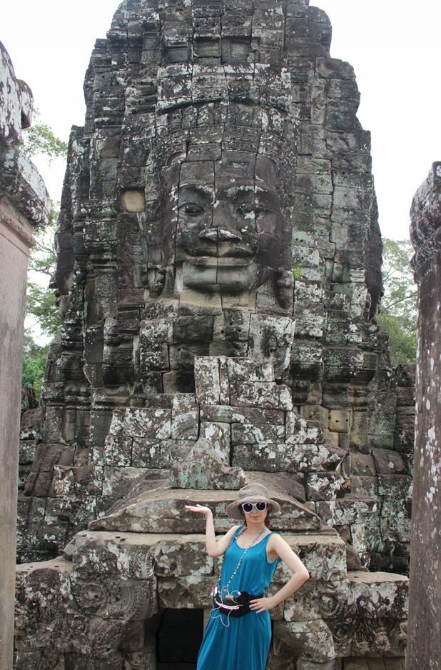 这一天还算运气好,早上看完日出就变成阴天了,说了人品大爆发吧!但路路的娇躯还是承受不了早起和运动的,这不,她就不怎么行事了,下一个巴戎寺她就在门口TUTU车里等我们了,晶晶负责陪同她,之后晶晶看到我们的照片就悔青肠子,谁让她们不知看看攻略啊,连这里是神秘的微笑都不知道。