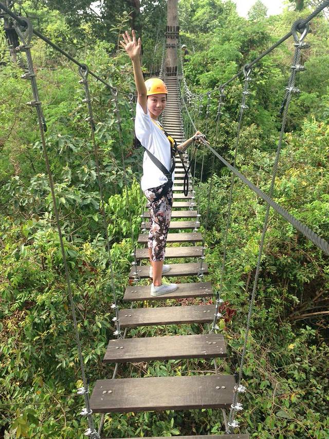 丛林飞跃点一人一教练,帮我们穿戴防护工具,带我们一起穿越丛林,认真示范,讲解,遇到我如此胆小的,一定郁闷坏了吧,几次都是退回来不敢飞跃的,相对的橙子就胆大包天了,我被严重鄙视加嫌弃,哎,人老了,胆也小了,原谅我吧。