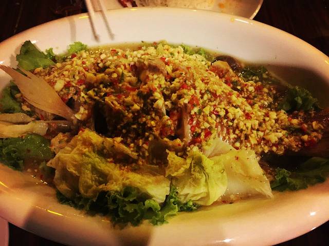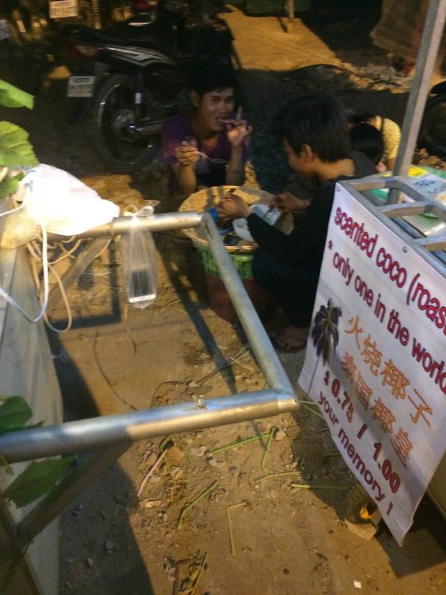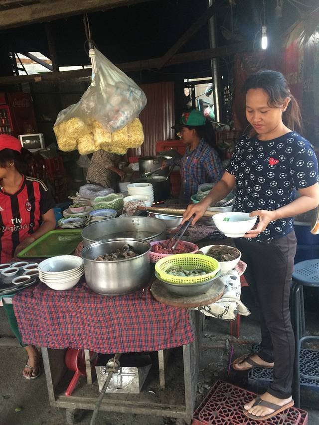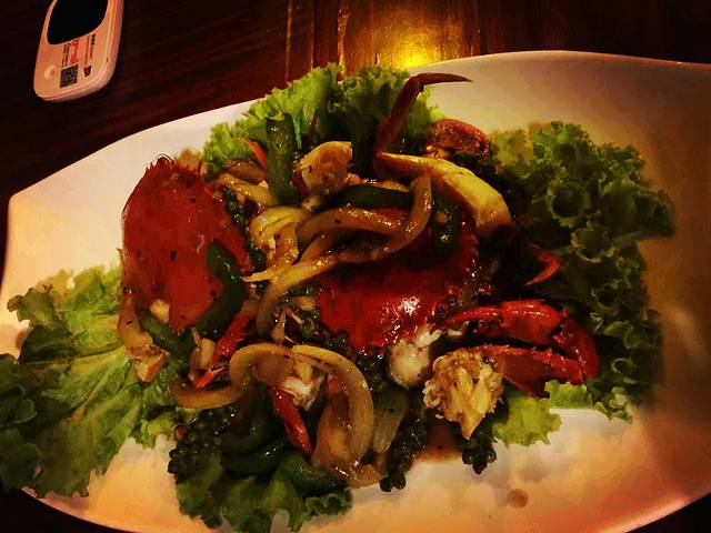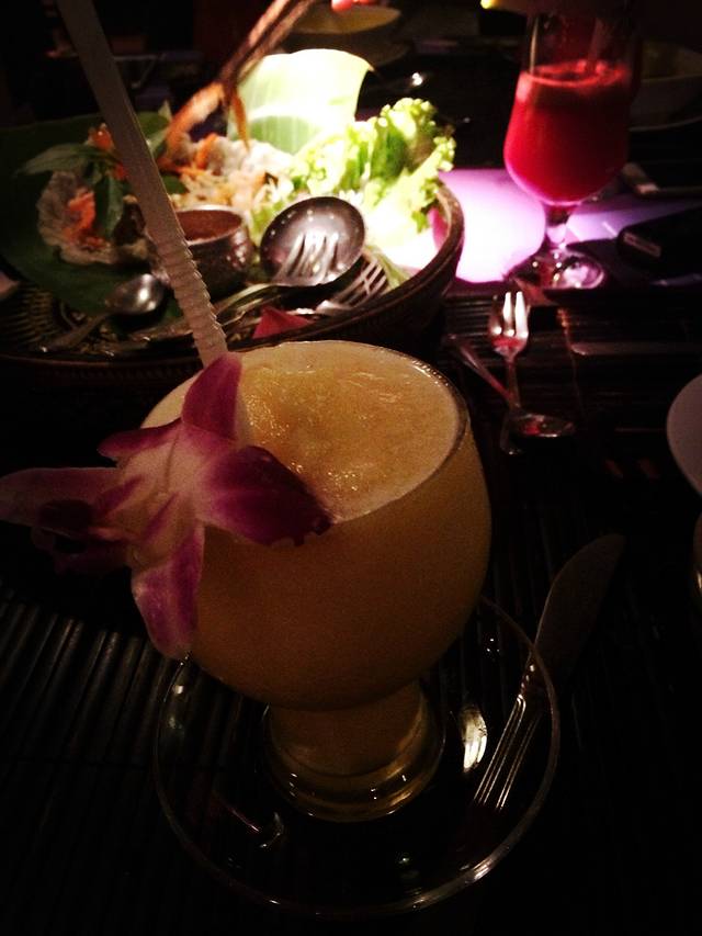 这家叫什么我忘记了,就在洞里萨湖对面,旁边是我们刚刚做按摩的地方,这里的菜很好吃,价格也不贵,最为重要的是,我们在3楼吃饭,可以看到洞里萨湖夜景,非常凉快的河风吹着,品尝美食,看着美景,心情好得不得了,最赞冬阴功汤,大鱼大蟹春卷炒饭,冬阴功汤上了两份,饮料都是鲜榨,一共吃了31刀。