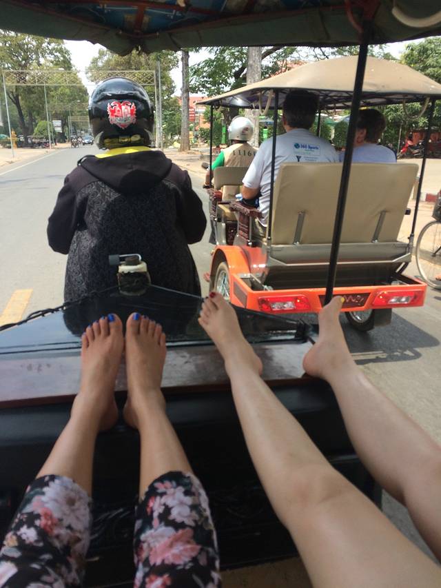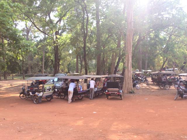 在柬埔寨,TUTU车满地都是,每个宾馆门口都有,每个景点门口都不少,使用不用担心,随时有。可以还价,比如他们说5美金,你换3美金,不同意也没有关系,他们都很客气的。