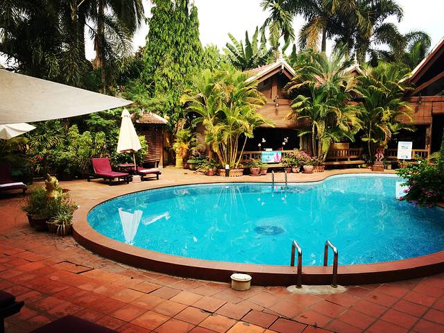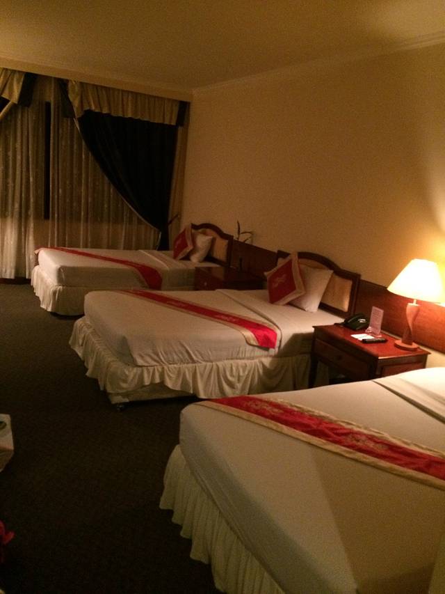 本来是机加酒的,话说蓝河酒店和公主酒店,还四星级呢,卫生很不怎么样啊,蓝河很偏,去哪儿都不方便,反而我们在暹粒街头随意找的Angkorlana hotel,才25美金,就在博物馆正对面,边上有家自助餐厅,这个酒店很不错哦,卫生,弄得很漂亮,有泳池SPA,很不错的餐厅,含早餐