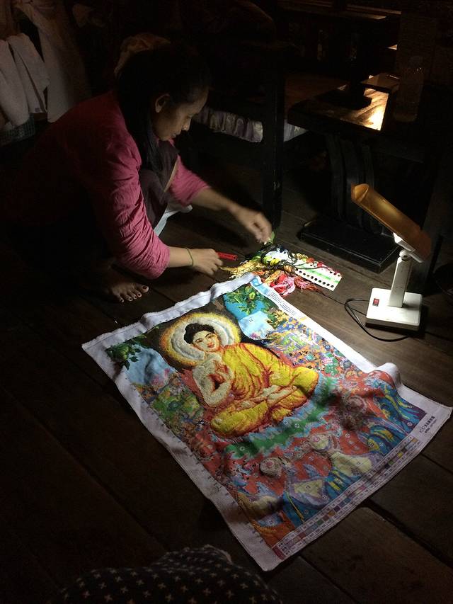 晚上她们三个去看吴哥的微笑大型演出了,据说挺不错的,我没有去,我负责把她们的行李都带去酒店,搬死老娘我了!我一个人去游泳池夜泳,整个就我一个人,很舒爽啊,然后在泳池边走了SPA,SPA店主正在绣十字绣,这东西风靡全世界嘛!