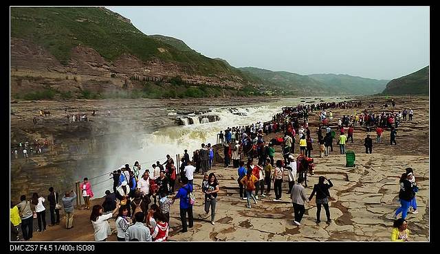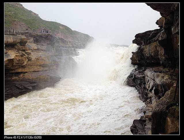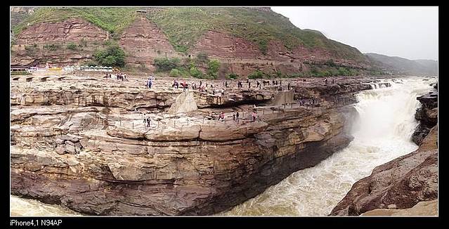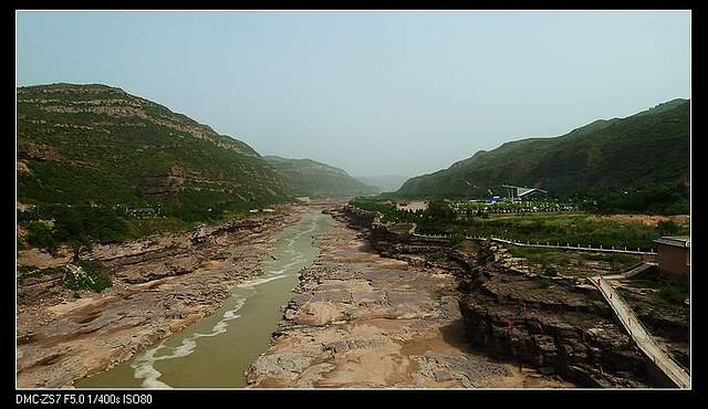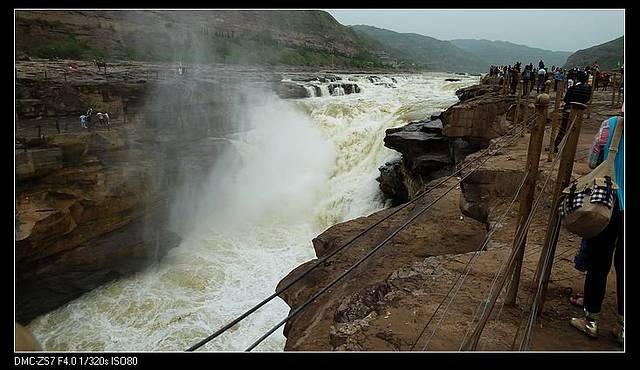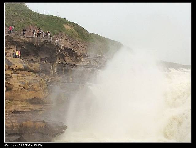 壶口下游的黄河,水好小,河面很窄,感觉都干枯了可以一脚跨过对岸。不过一到瀑布,这气势就出来了。前一天司机说号称一头猪放到壶口瀑布,出来时毛都脱光了。老妈还笑侃,那么这水该有多烫呀!不过这水流量,我觉得的确跟美加的尼亚加拉有得一比,只是规模没那个大。