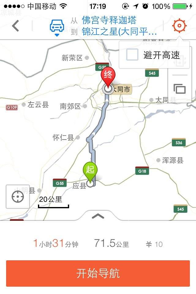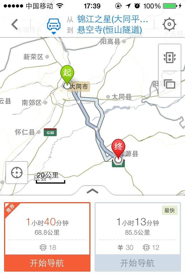 今天的行程就比较简单,因为都是在大同市内。当然,市内也得导航,不能被憋死在最后一公里。