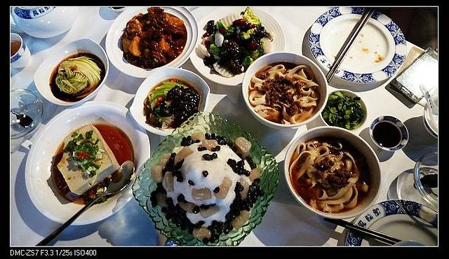 去乔家大院我们没有走高速,60KM的道路况不错,大约1个半小时就到了。刚到乔家大院就被旁边的招呼了,说停车场进不去,在他家停车免费,吃不吃饭都免费。人家既然这么说,眼看也是中午时分,就吃吧,而且好像周围没吃的(后来走到乔家大院门口,发现对面、旁边一堆吃的)!也算是省了停车费了。这山西的面食,都说有名,可一开菜单,完全不明白。问了老板都是些啥,到头来还是不懂。那就随便点点吧!