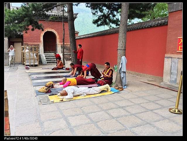 塔院寺,有白塔,据说供奉舍利,可以围着白塔转圈,据说积功德的,好多人都在转,还念念有词。这里,我们看到了很虔诚的香客,真的是五体投地啊。