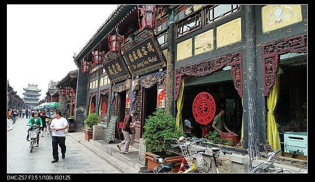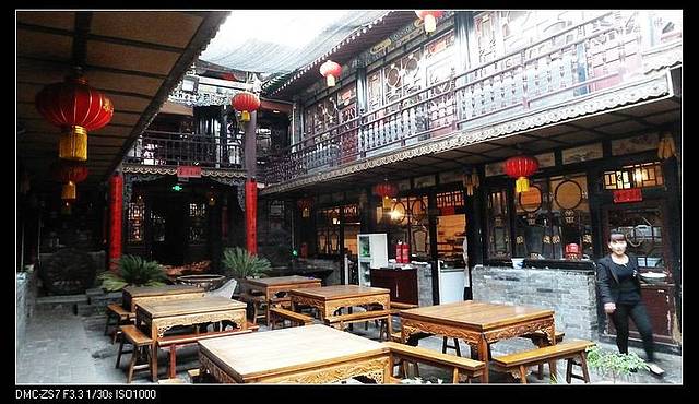 出了城隍庙,回到主街。我们又去了同兴公镖局,同学说,明天要去的镖局更大。一圈下来已经快6点了。不过平遥有些景点都开到7点,加上天黑得晚,大可再走几个。但我们实在被乔家大院这个下马威给震住了,总想着要节省体力走明天更大的王家大院。于是,回客栈休息一下,就吃晚饭散步,结束这一天的行程。