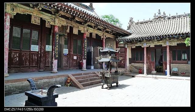 我们就下了高速,顺便吃个午饭,也增加了这么个景点。小西天据说也是以彩塑闻名,比双林寺规模小,而且40元的门票居然不打折。比较可恶的是,等到我爬上高高的台阶后才告知他们不参加活动,要买票。哎,爬都爬了,还能怎么滴!