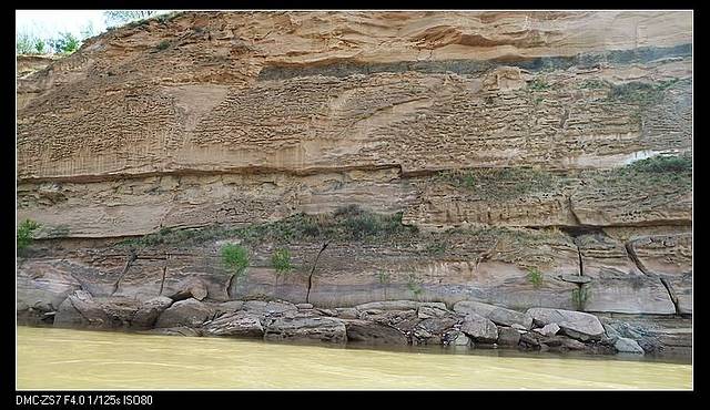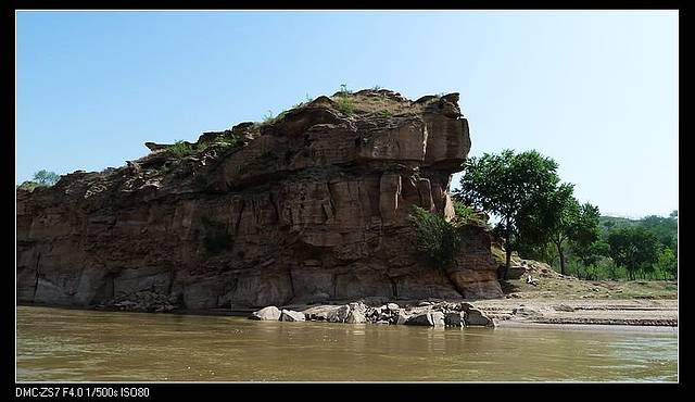 岸上有个“龙椅”是可以坐的,当然你得爬下去坐,因为在峭壁上,然后再爬上来。可惜光线不好,反光,没拍好。所以到黄河画廊,要下午才好,否则照片里全是刺眼的阳光。