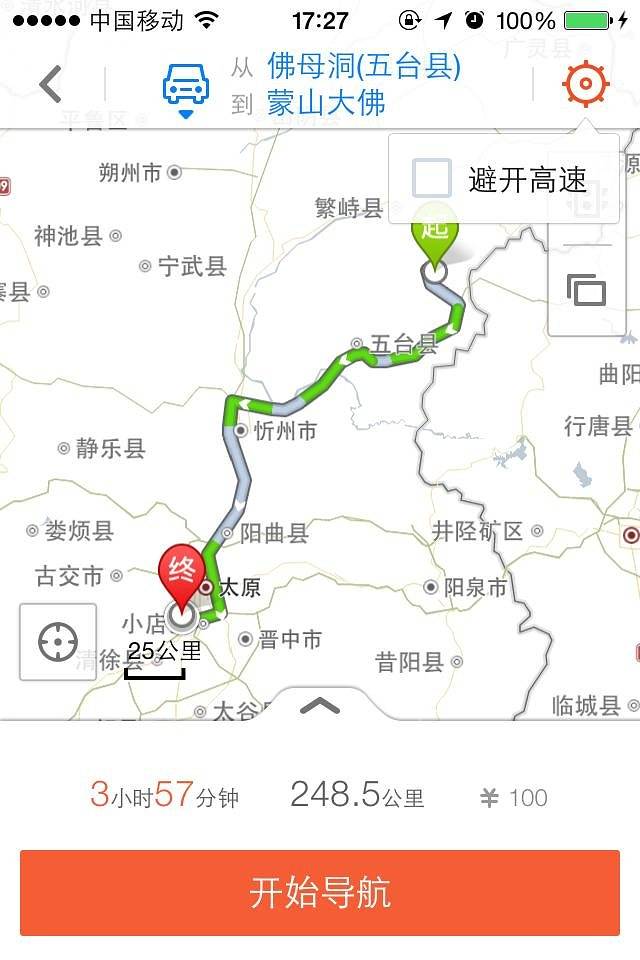 看着天色还早,我打算再增加一个景点,去太原南边的蒙山大佛。按理说,应该从南边碛口回来的时候去的,这样比较顺路。但是当时实在是太晚了,所以这次只能从北边再绕过去了。司机是太原人,进入太原,他说他认识了,还让我关了导航,我就关了。没想到最后还是没找到路,哎,这导航,这次真是全靠你了