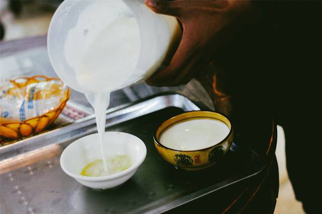 将热牛奶“撞”入装有姜汁的小碗中,几分钟后凝固即可食用。口感香滑,即便是大冷天,吃一碗也能热腾得让人满血复活。“撞”是一个激烈的词,偏偏牛奶跟姜汁又柔软至极。“暴力”而矛盾的食物美学,值得花心思去考究。