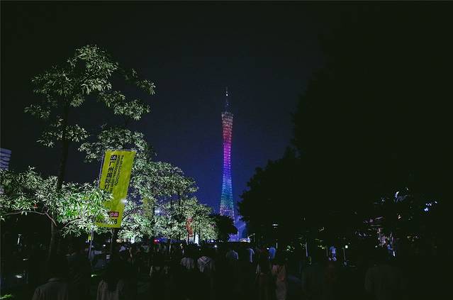 碰巧赶上广州国际灯光节,花城广场挤满了人,名副其实的人比灯多