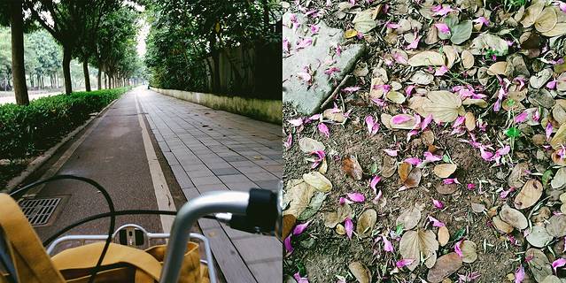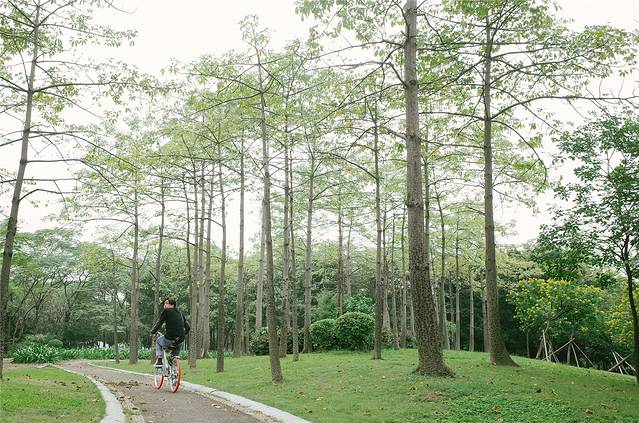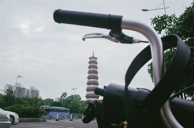我听着歌,骑行在安静的小路上,时不时的看一眼远处的小蛮腰,校准方向