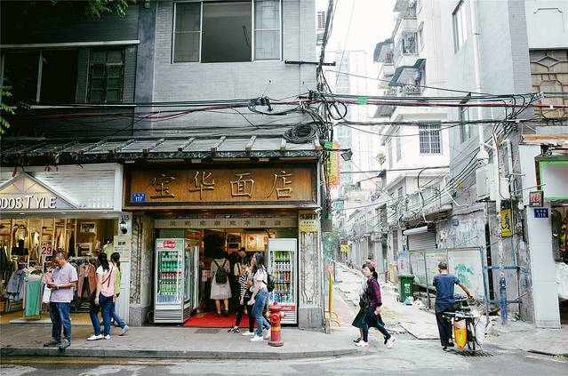 一条不起眼的双向小路,两旁竟林立着好几家老字号美食,宝华面店便是其中不得不提到的一家。点了一碗鲜虾云吞面,汤底浓郁,面身弹牙,每个云吞里包着一个虾仁,新鲜爽口,一口咬下去,幸福得让人想流泪