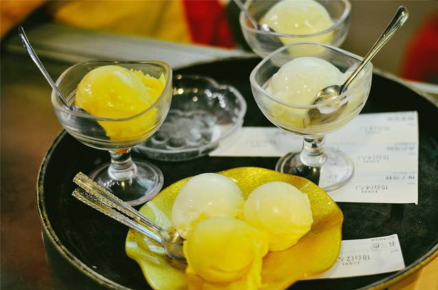 冰室,一个很港味儿的词,在炎热漫长的南方,它的存在高冷又亲切。老店老配方,猛加糖加料,才不管是否符合现代健康需要,固执地坚守上世纪的味道。两人分享一杯单色球,也能被它甜死
