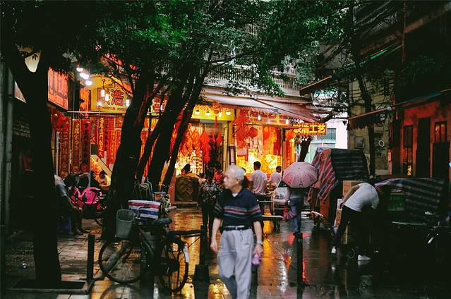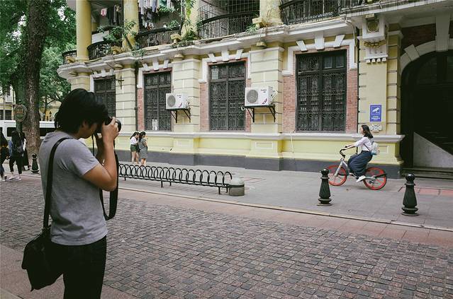 这天,阳光很好,洒在恩宁路两旁的建筑上,好像照亮了历史,人们走在骑楼的屋檐下,也就成了历史中的人物。
