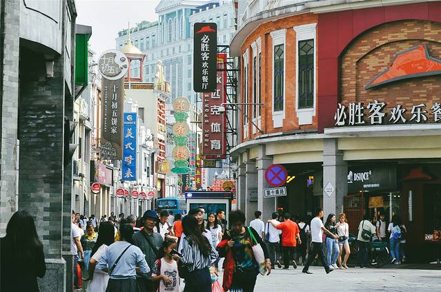 路两旁都是商铺,但是五成没有营业,另五成也没有什么顾客,路上没有什么车,行人也不多,据说这里曾是风光无限的商区,可如今只能靠想象力去还原那盛景了。