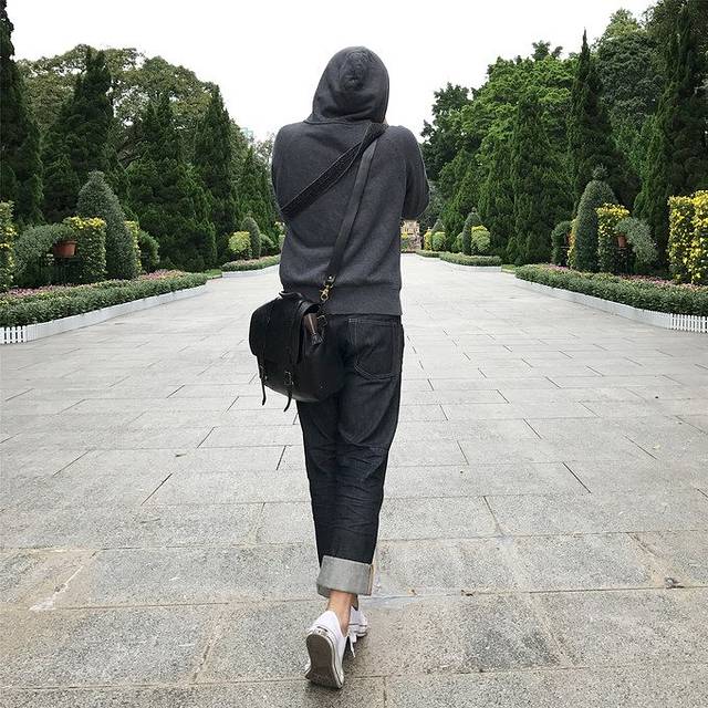 怎么才能不像自拍呢?把三角架升到最高,让相机的视角接近人的视角,这样就会给人一种错觉,是同伴为你拍的照片了~ps:如果三角架不够高,你可以适当的屈膝,拍摄时,尽量靠近相机的位置。