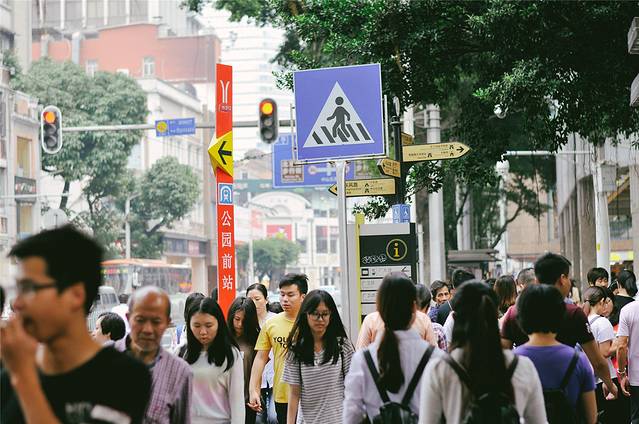 花城广场大部分是步行街,周边的道路规划很好,汽车和行人有序的汇聚,分散