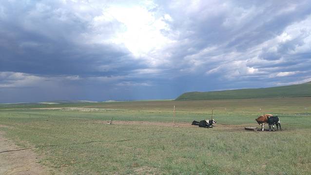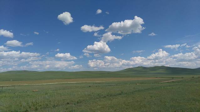 这是老哥王队带领我们来的第一个目的地。这片草原也是离呼伦贝尔首府海拉尔最近的一片草原。遗憾的是并没有看到书中的蓝天白云,为此老哥还特地和我们解释,“这两天也不知道那边的蒙古干嘛的,但是我保证,只要一场雨,到时候可别震撼到”。不遗憾那是骗人的,随便拍张都能做壁纸的图得从之后开始。不过这已经让我这生活在钢筋混凝土中的土鳖觉得不枉此行了。