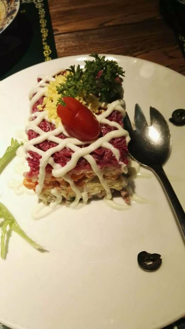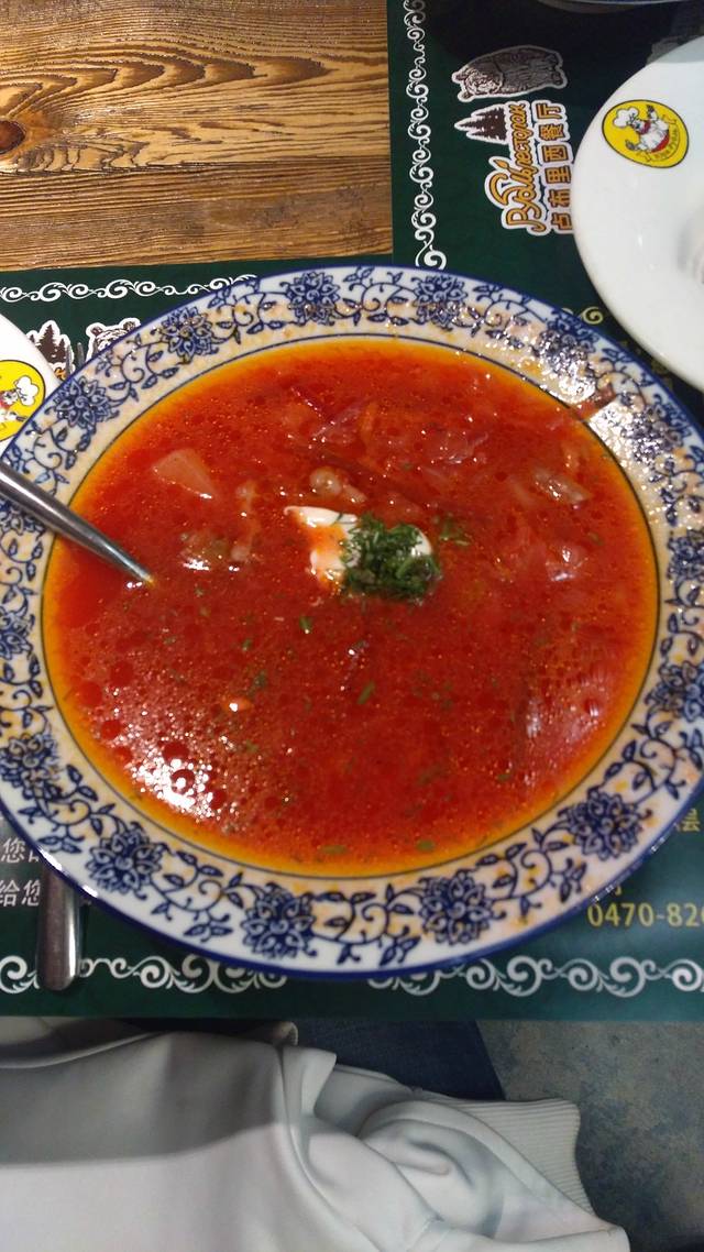 小张哥说,“上有天堂下有苏杭,不如满洲里金碧辉煌”。刚进入城市只是觉得,作为中国最北端的对外贸易口,满洲里的俄系风格比较明显,而小张哥的话是在晚餐后才体会到的。晚餐的话考虑到天天烤羊排、手把肉也该换换口味了……而满洲里则是这趟旅行中最繁华的城市,于是选择的是卢布里西餐厅。