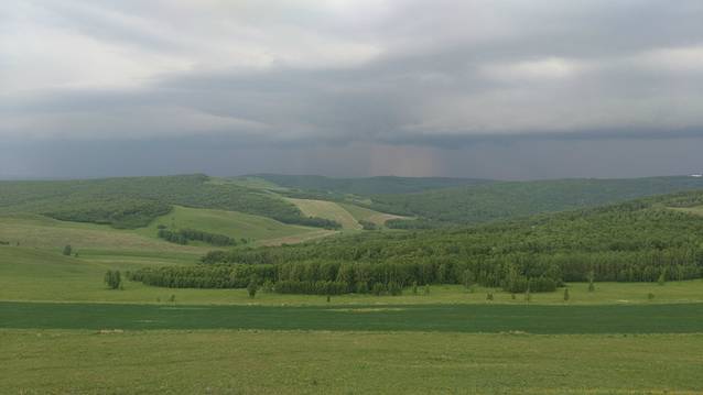 这张图比较有趣,西边还是晴朗的一片,东边却是下着大雨。老哥说,“那边是俄罗斯,随他下好了”。