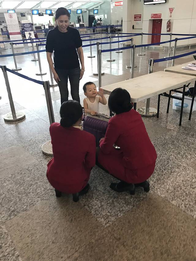 机场的本地空中乘务员也很喜欢他 还给他录了视频😍