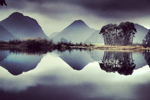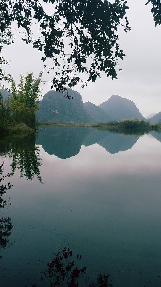 普者黑在彝族语里的意思是鱼虾多的池塘,这几年的名声也是越来越响,归功于它绮丽的喀斯特山水田园风光,也归功于芒果台吧😄,其实普者黑最适合游玩的季节应该是5月到9月,很多关于普者黑的游记都是在这段时间,因为荷花开的时节也是嬉水游玩的好时候,照片也是风和日丽。但我这次去的时候确是个阴天,天气也不好,又冷又阴也不舒服照片也拍不好,很多人也应该是这样认为的吧!但其实并不然,我想既然是阴天就让它阴得更有味道一点,于是就有了水墨丹青画风的普者黑,也就有了泼墨山水的意境。