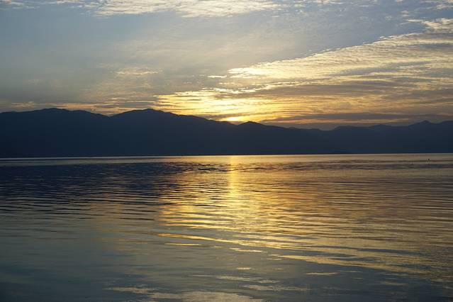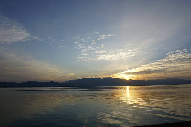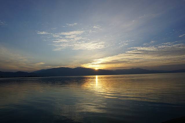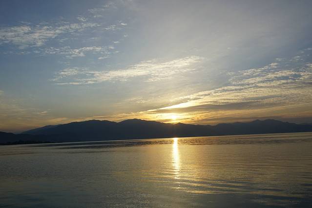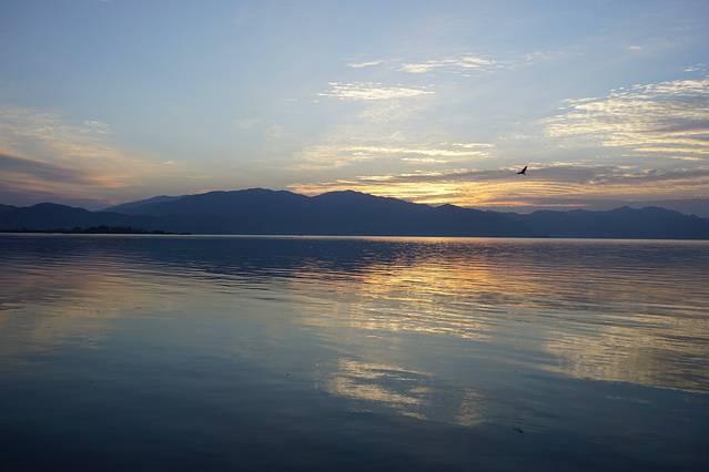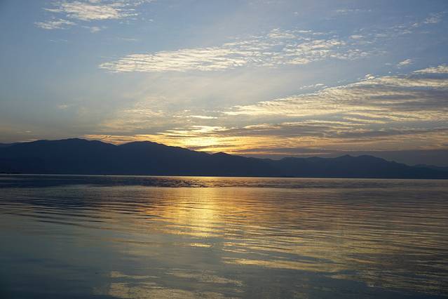 大理的日落在晚上七点半,日出在早上七点半。和闺蜜一早起来在酒店大平台上记录下日出的美景,很值得。