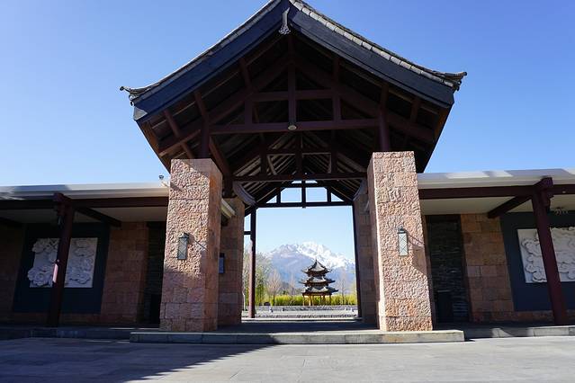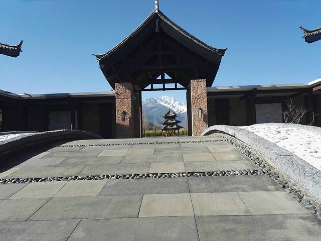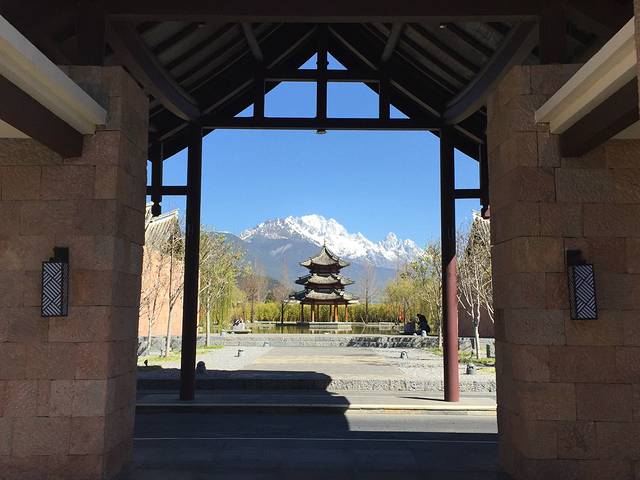 丽江悦榕庄的纳西式别墅均朝东北向,均可欣赏到位于海拔五千六百公尺的玉龙雪山山顶,传说中尤如一玉龙躺在白云中。