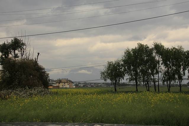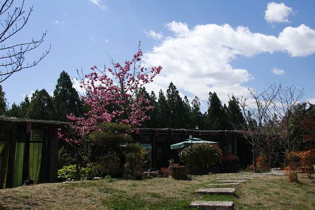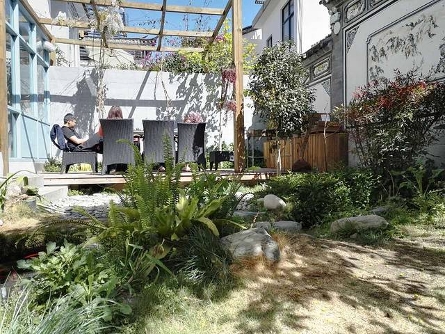 在前往酒店的途中,经过了喜洲镇的一个小咖啡馆。有点下毛毛雨,躲在咖啡馆里面欣赏窗外的那片春色,意境不错。