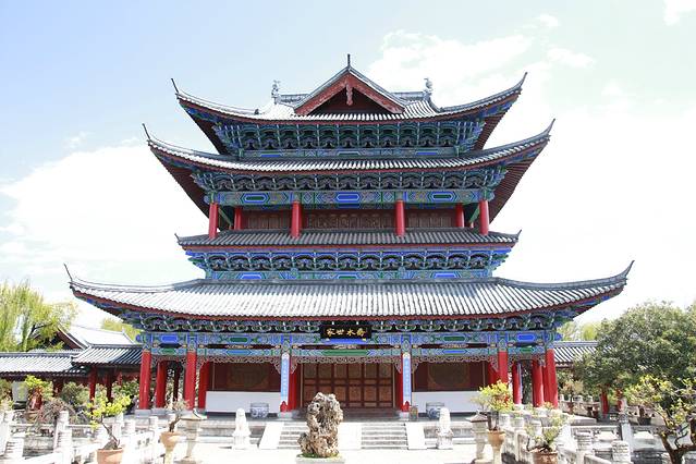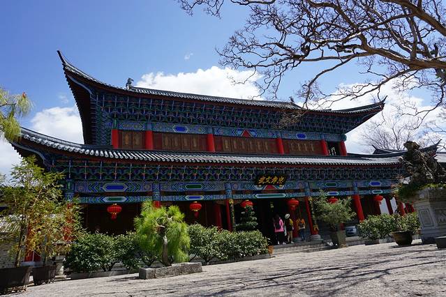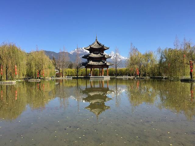 土司官邸,建筑宏大精美,还是《木府风云》等热剧的取景地。建筑融合了明代中原建筑风格和白族、纳西族的工艺,精美壮观,徐霞客曾赞“宫室之丽,拟于王者”。如今木府已是古城的一座地标,吸引无数游客来此欣赏。PS: 木府是不包含在丽江古城保护费免费游玩景点里面的,需要另外购票。