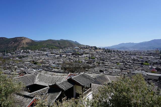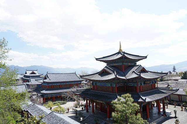 丽江古城的制高点,站在楼上可以俯瞰整个大研古镇的全貌,还可以远望玉龙雪山。门票 50元。参观完木府后,可以从木府后面的一条山路上去。也可以从古镇外面的入口走上去。其实也可以坐山顶的民宿喝喝茶赏赏景。