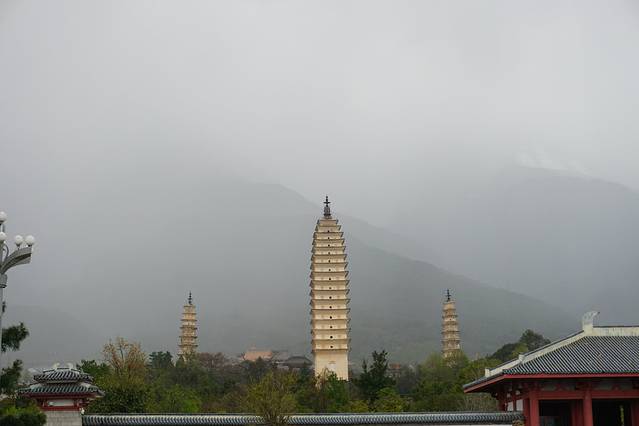 只是途经,三塔拍出来很漂亮,据说三座里面一座小的是六脉神剑“段誉”造的。