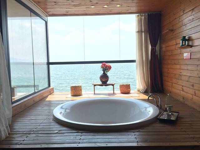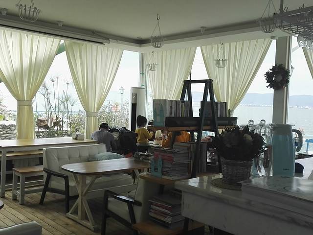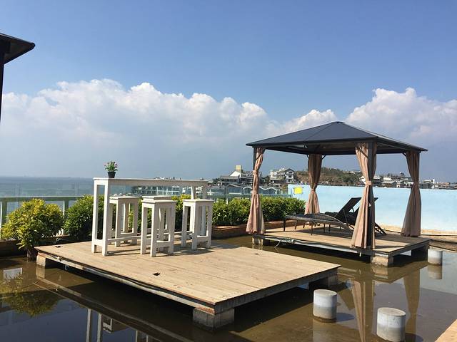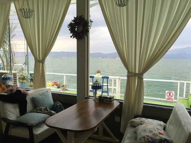 酒店性价比挺高,直观海景,视觉效果震撼。大理一般要在晚上七点半方才降下夜幕,所以呆在酒店一边看书一边欣赏日落非常的舒适。