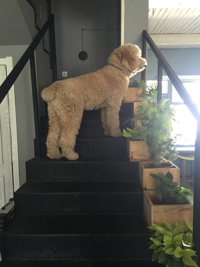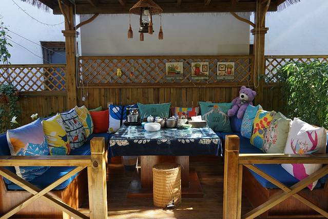 人民路上的一家小小客栈,顾名思义只有柒间房间,老板养了一条巨型贵宾,一岁的“小狗“站起来一米六,可爱的不得了。