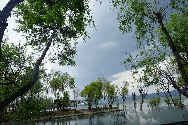 海舌生态公园位于洱海西岸,距离喜洲大约3-4公里,是一处延伸到洱海中的狭长半岛。岛上风光原始,可以看到大片的树木和长长的蒿草,半岛深处的洱海也异常清澈蔚蓝,景色清新优美,拍照非常好看,如果今天阳光普照,海舌应该会更美。