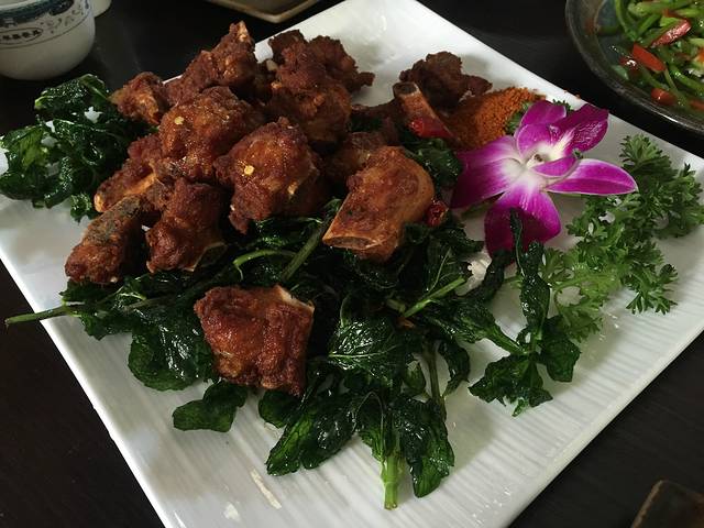 午餐我们在大众点评搜索了一家比较受欢迎的餐馆,东西很好吃,尤其是薄荷叶炸排骨。