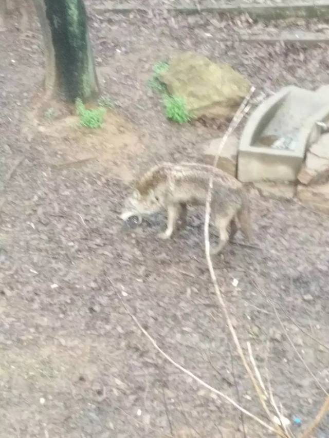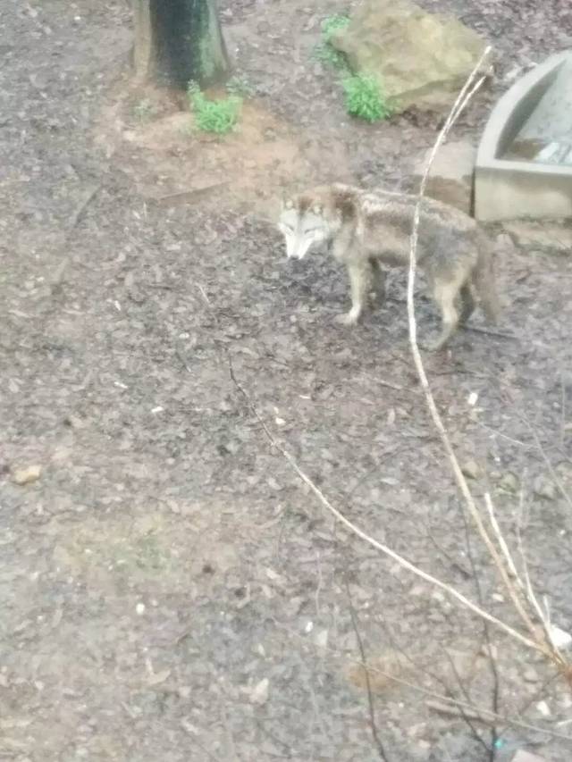 这些狼都很懒,没有什么兽性了,是隔了很高的台子往下看到,手机一放大就不清楚了,勉强抓拍到一张露牙的,不过据我现场观察......太远了我也看不清楚