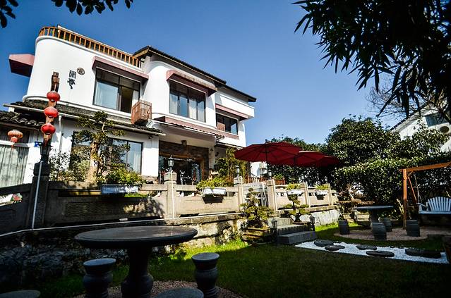 闲亭客栈的外观上看是非常不错的吧?关键是非常的有民宿的味道。闲亭的公共区域给人的感觉像是在自己家的院子一样,有休闲版的座位、有假山和小池子。顿然间让人觉得这是到了自家宅子一样,这样如家的感觉大概就是民宿的灵魂之所在了吧?总而言之,山野君我是非常的喜欢这样的感觉的呢。