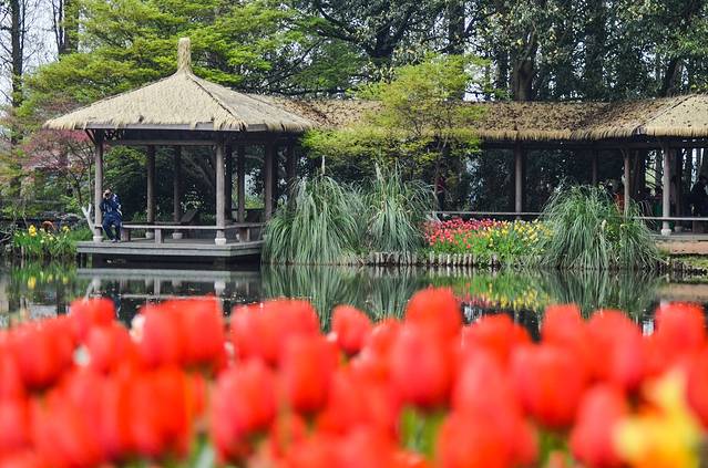 到处都是郁金香花,是不是很美? 时不时的就能碰到一对年轻情侣,放佛在太子湾演绎着显示的浪漫爱情故事呢!