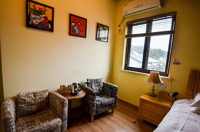 还有就是山野君所住的房间有阳台,能够坐在阳台里看外面的龙井茶园,也可以在这里喝喝茶、聊聊天。阳台最为简单而普通的作用还可以拿来晾晒衣服,当然了前提是在天气晴朗的时候了,下雨天这阳台是无法正常使用的。