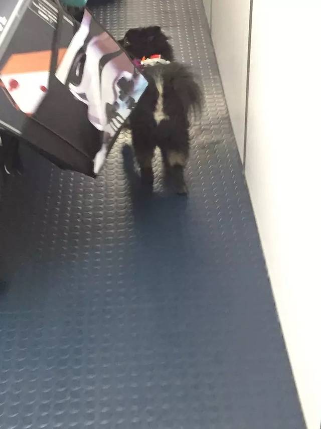 你看,下了飞机以后跟着主人小屁股一扭一扭的就走了。