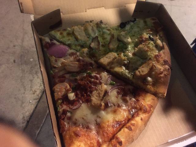 逛逛晚上了,我们决定尝试下墨西哥菜,据说美国墨西哥菜和日料很好。吃完以后我的评价就是呵呵~~~出来果断在一条应该是红灯区的街区旁边吃了两块垂涎已久的披萨,事实证明,便宜大份又好吃!!!