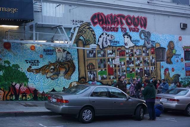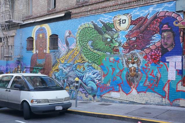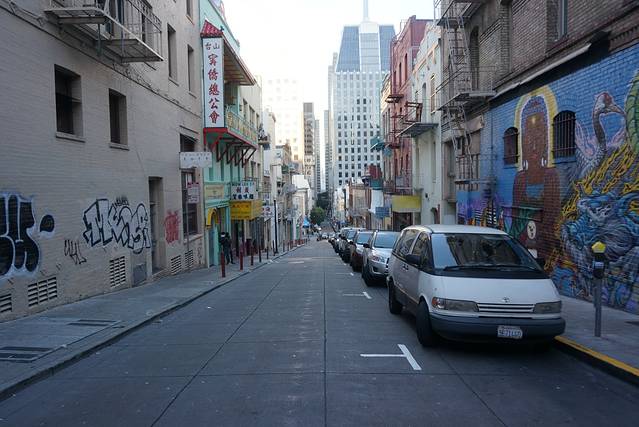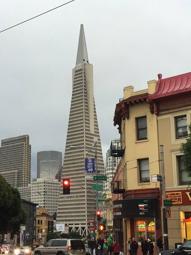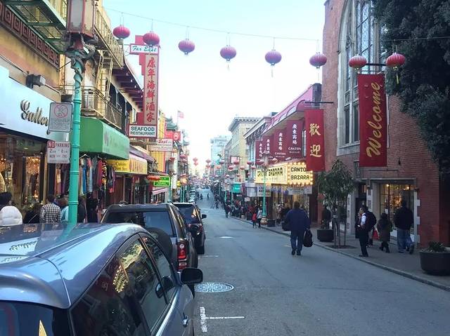 远远望了一圈我们就下去了,随便逛逛向唐人街出发了。据说旧金山的唐人街是美国第二大的唐人街。有点香港TVB90年代我们看的电视剧里的场景感。比较古老,人比较多,当然很多不错的中餐厅(港式为主)。
