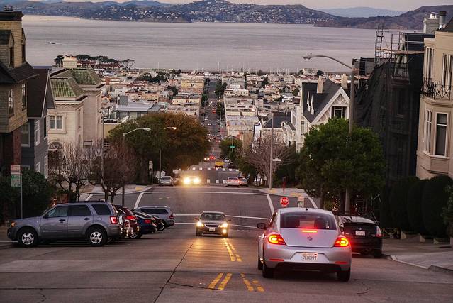 其实一开始,我没想到旧金山会这么美丽,不是那种自然风光,大山大川啊,而是整座城市高高低低,起起伏伏,就像过山车一样,很有趣,然而又建造的非常美丽。一开始开车上下很陡的坡时候,我们超兴奋!一边开车一边叫(少见多怪的几个人哈哈哈)