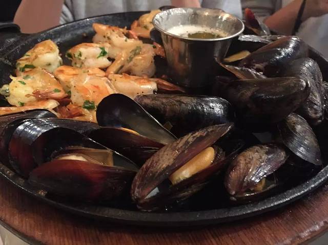 这就是大名鼎鼎的crab house 了,价格嘛,对于挣人民币花美元的朋友们来说,还是不便宜的,吃一个新鲜最好,对于我这种大胃王,要吃饱还是会把自己吃穷的。螃蟹我记得应该是50刀左右了吧,青口和虾是小份的快30刀?面是十几刀吧。。。。应该是这个价格。至于味道嘛,我只能说哪里的菜都不如中国菜好吃了。。。。。还行吧