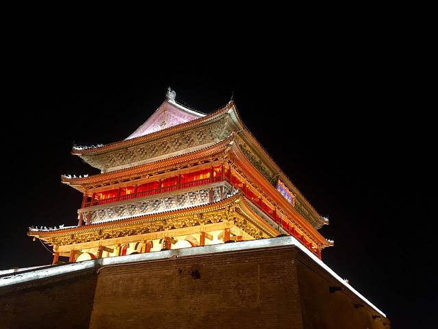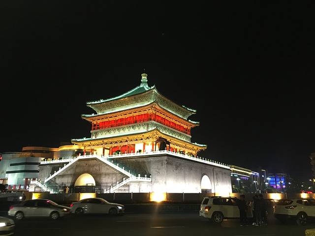 鼓楼,位于西安市的中心地带,回民街就在鼓楼后面。